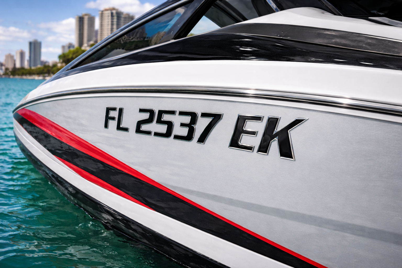 Sport Series Black Center Chrome Outline | Boat License Number Decals β 3 Inch Raised 3D Boat Registration Numbers for Boats & Jet Skis | Marine-Grade Waterproof Custom Boat Numbers