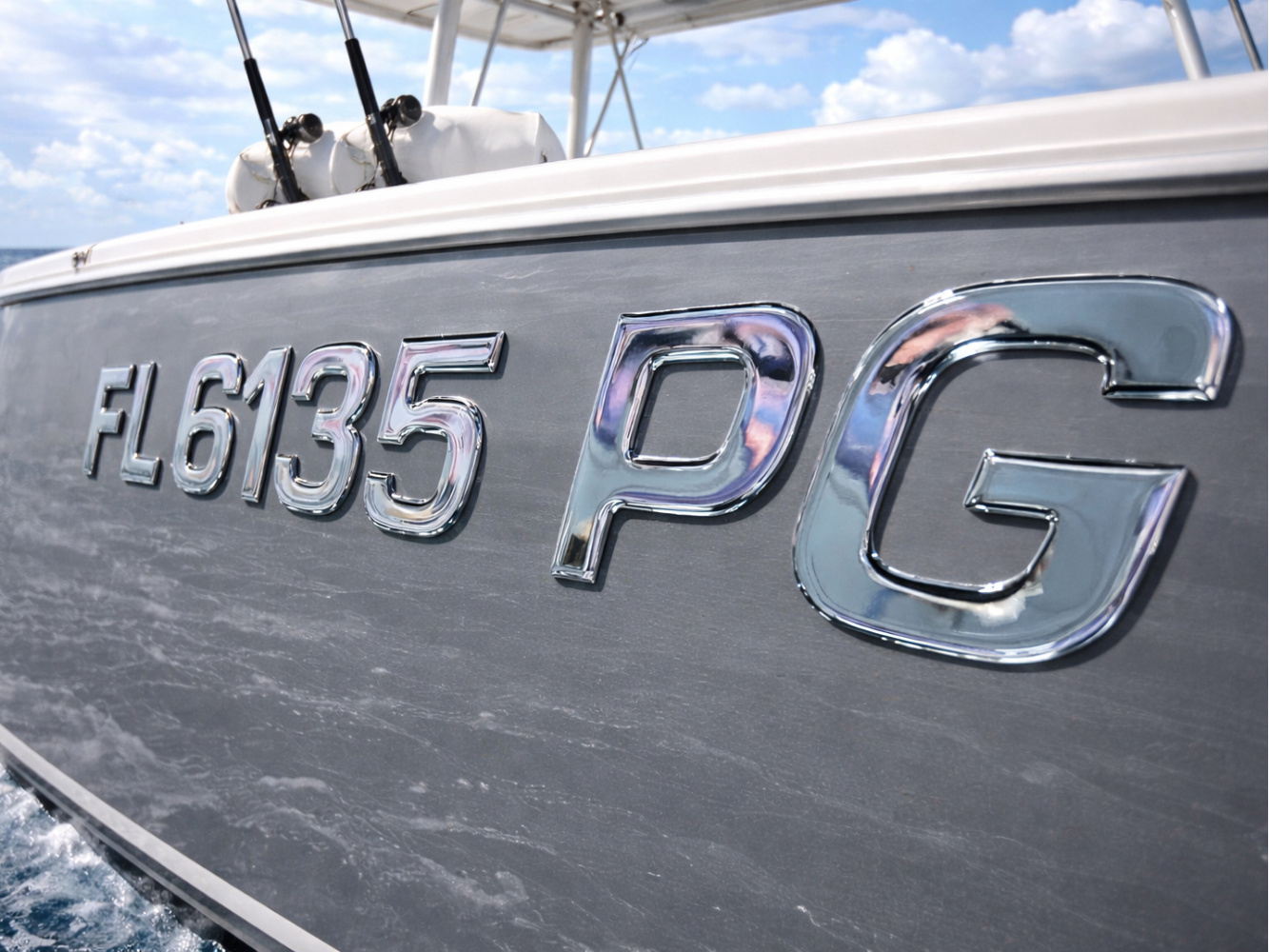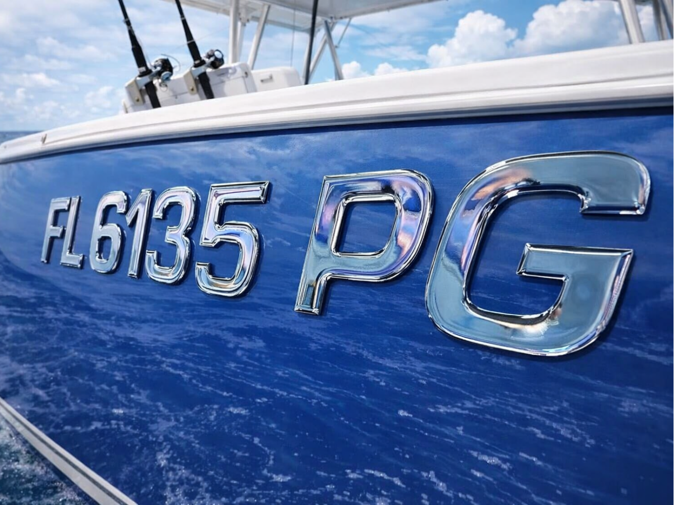 Surf Series Plain Chrome | Boat Registration Numbers Peel and Stick β Raised 3D Domed Letters