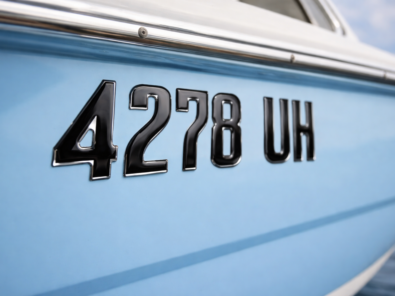 Upgrade your boat with our Sleek series font style black center chrome outline registration numbers. These raised domed letterings provide a sophisticated look and meet all registration requirements. Ensure your boat stands out with these Sleek numbers.