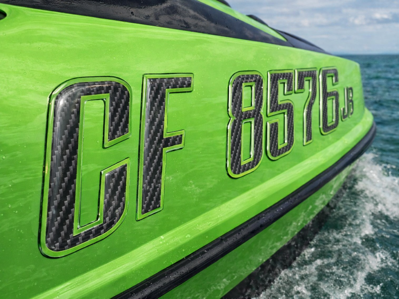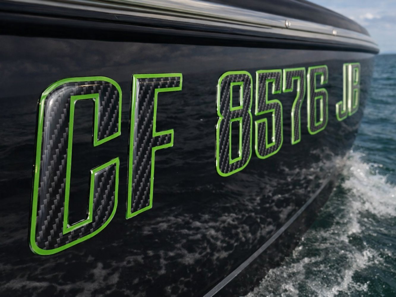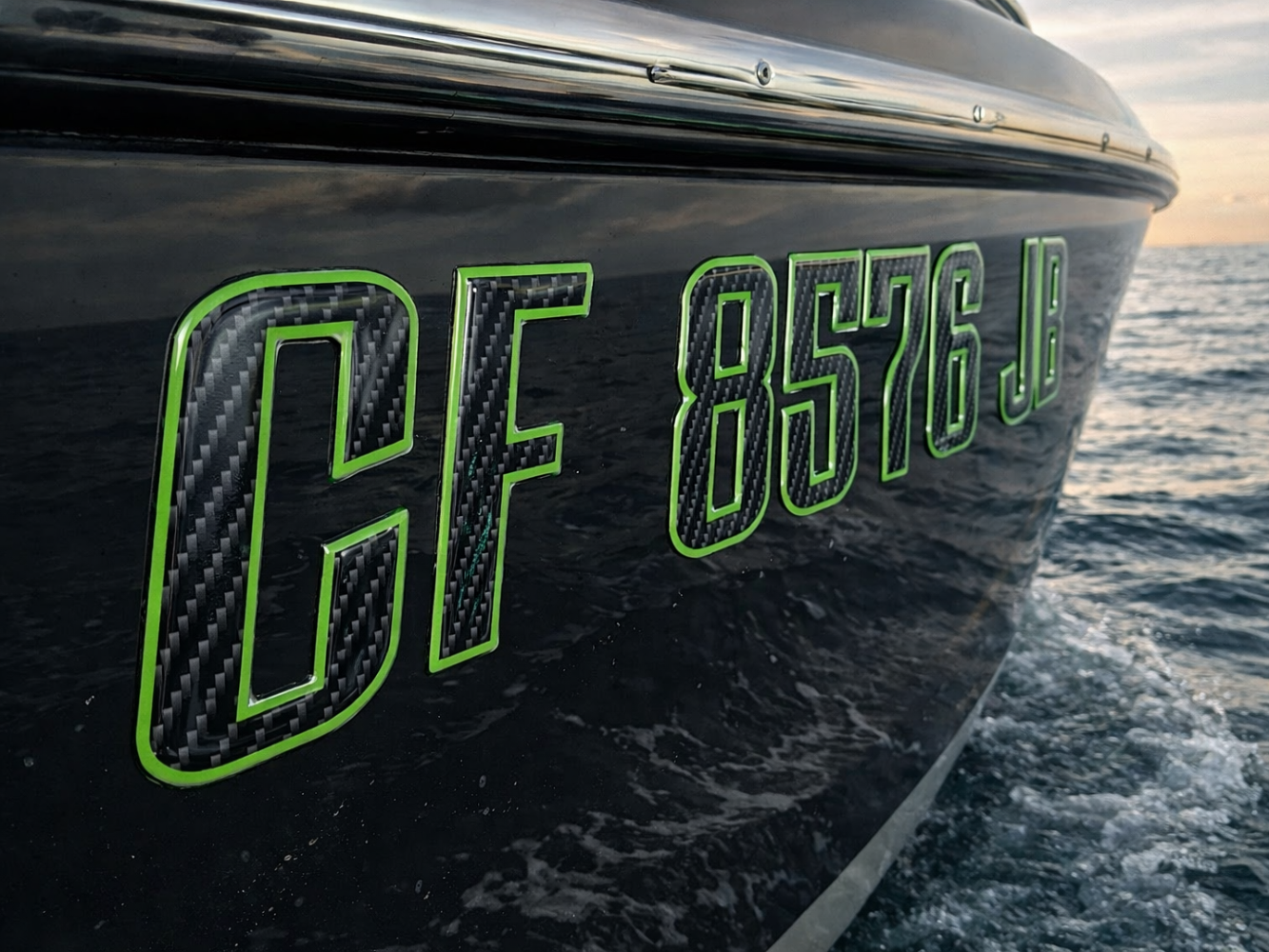 Boat Registration Stickers - Domed Carbon Fiber Numbers with Green Trim Custom