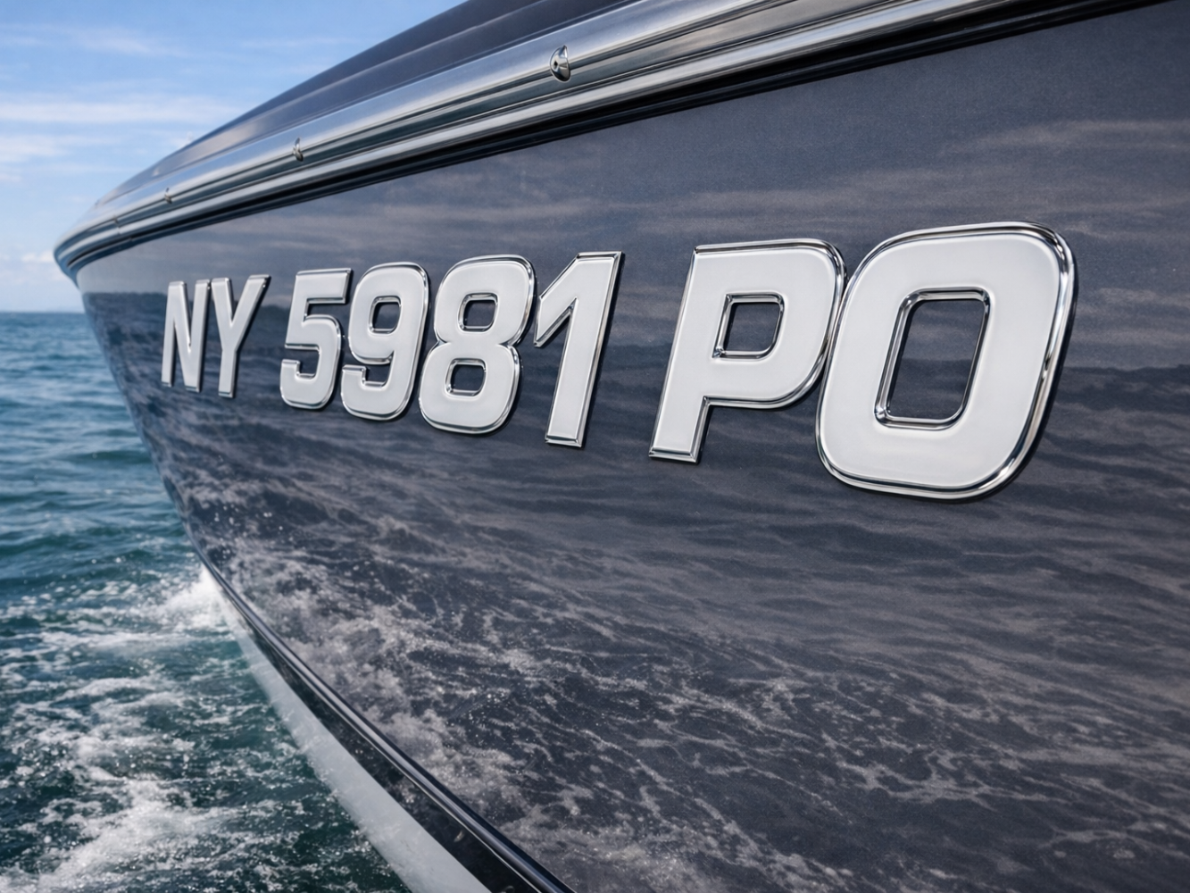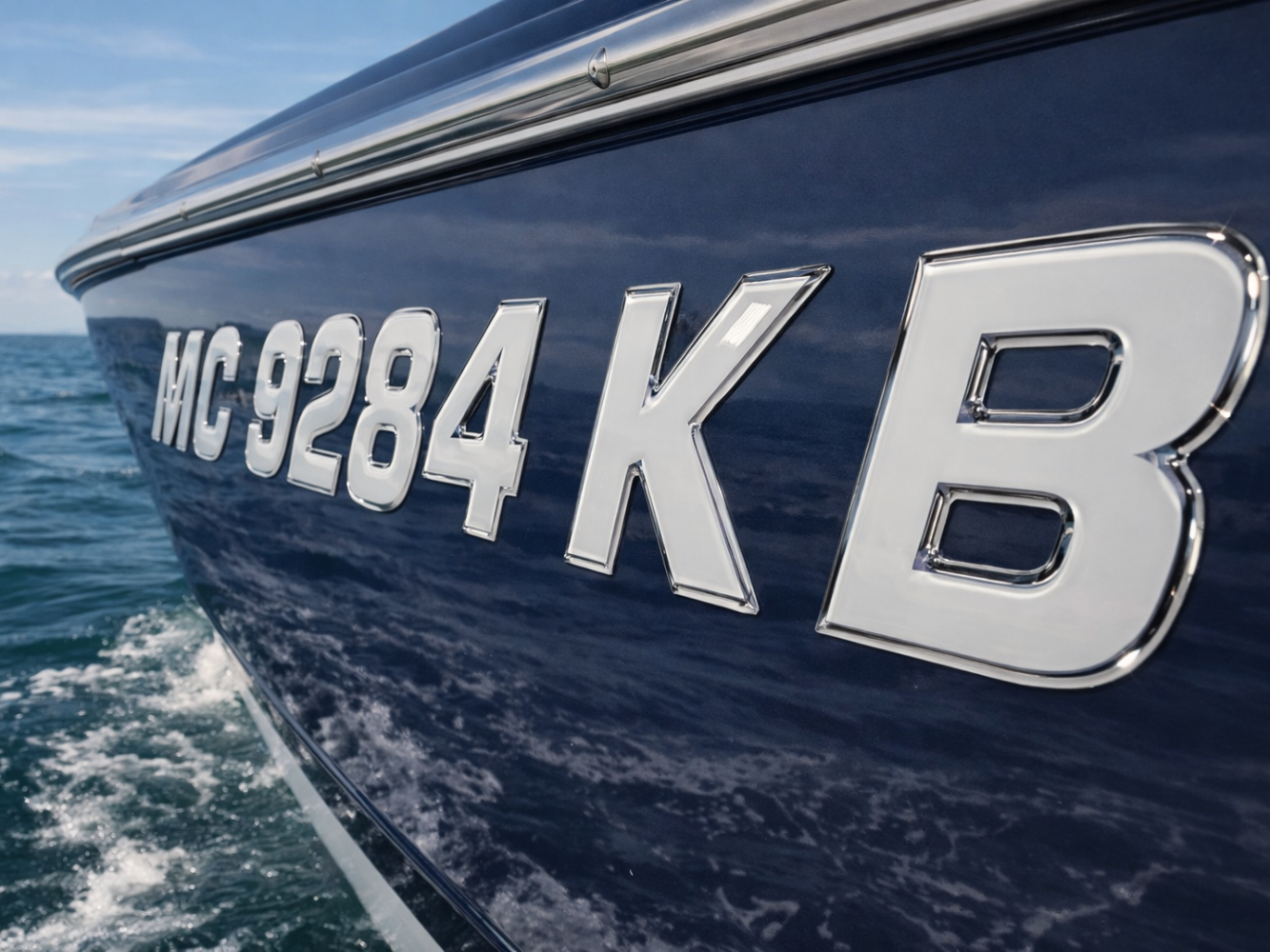 Boat Registration Numbers Domed Wake Series White Center Chrome Outline