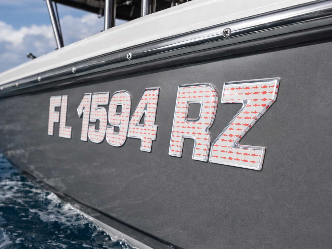 Domed Boat Registration Numbers – Raised Marine-Grade Decals | Fish Style 16 PCS