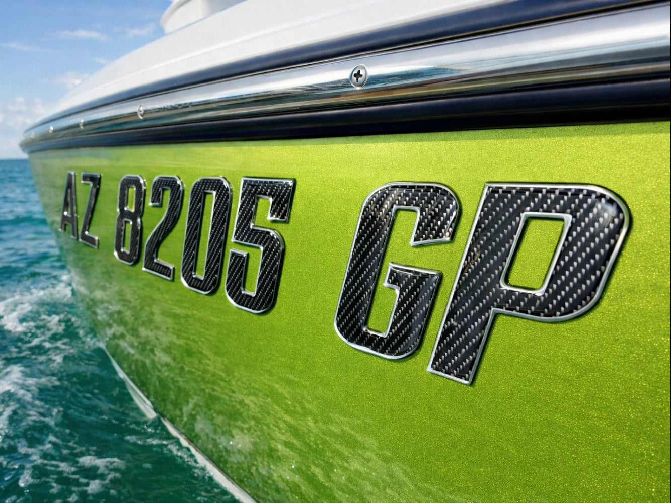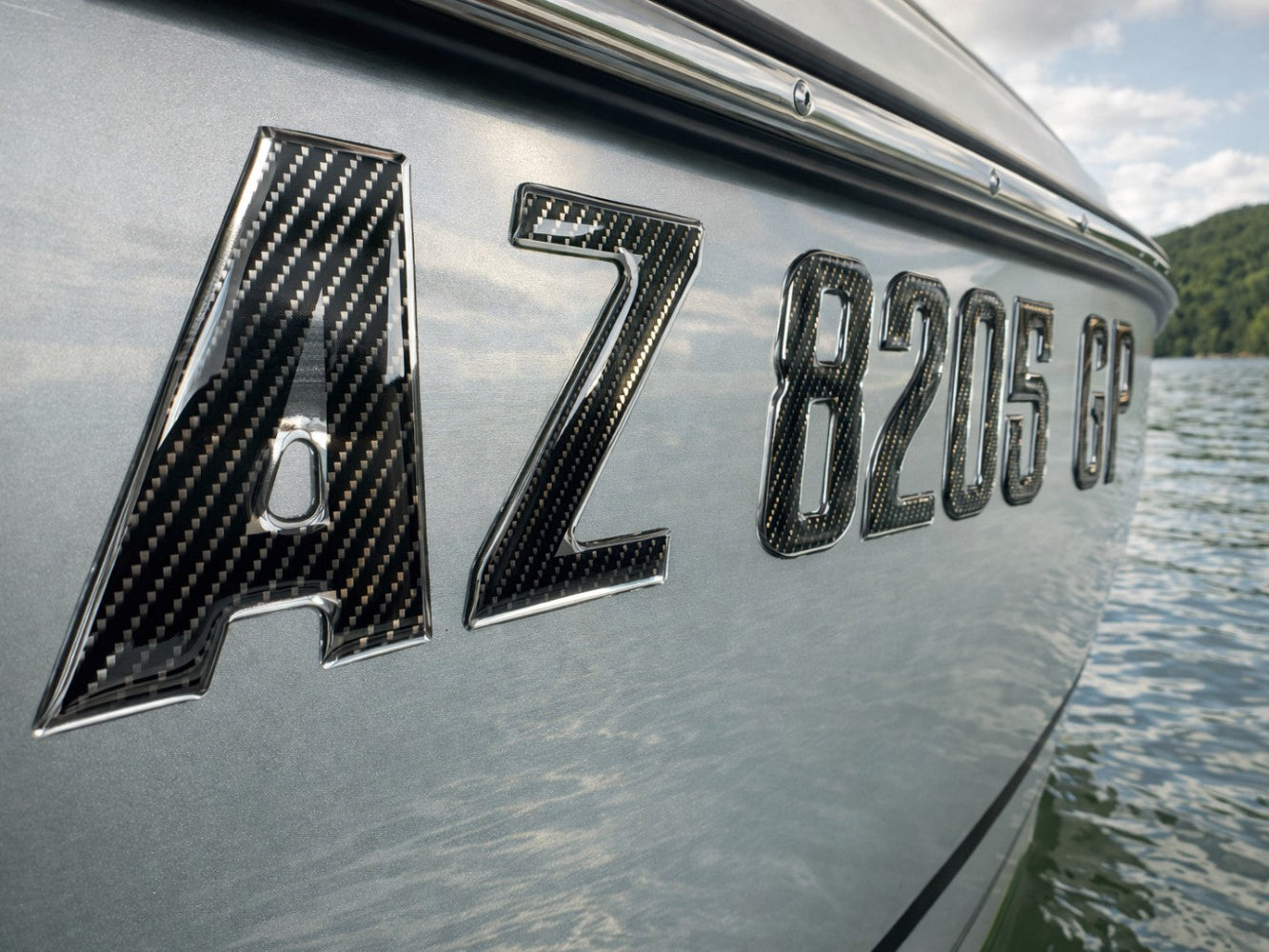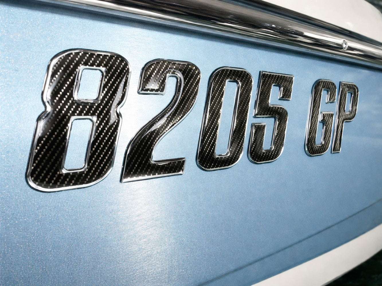 Carbon Fiber with Chrome Trim – Domed Boat Registration Numbers