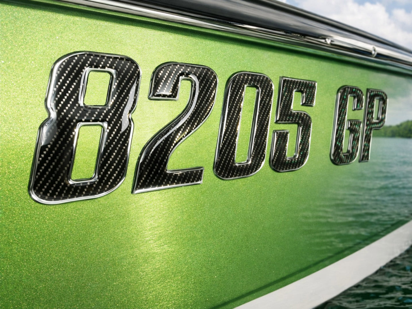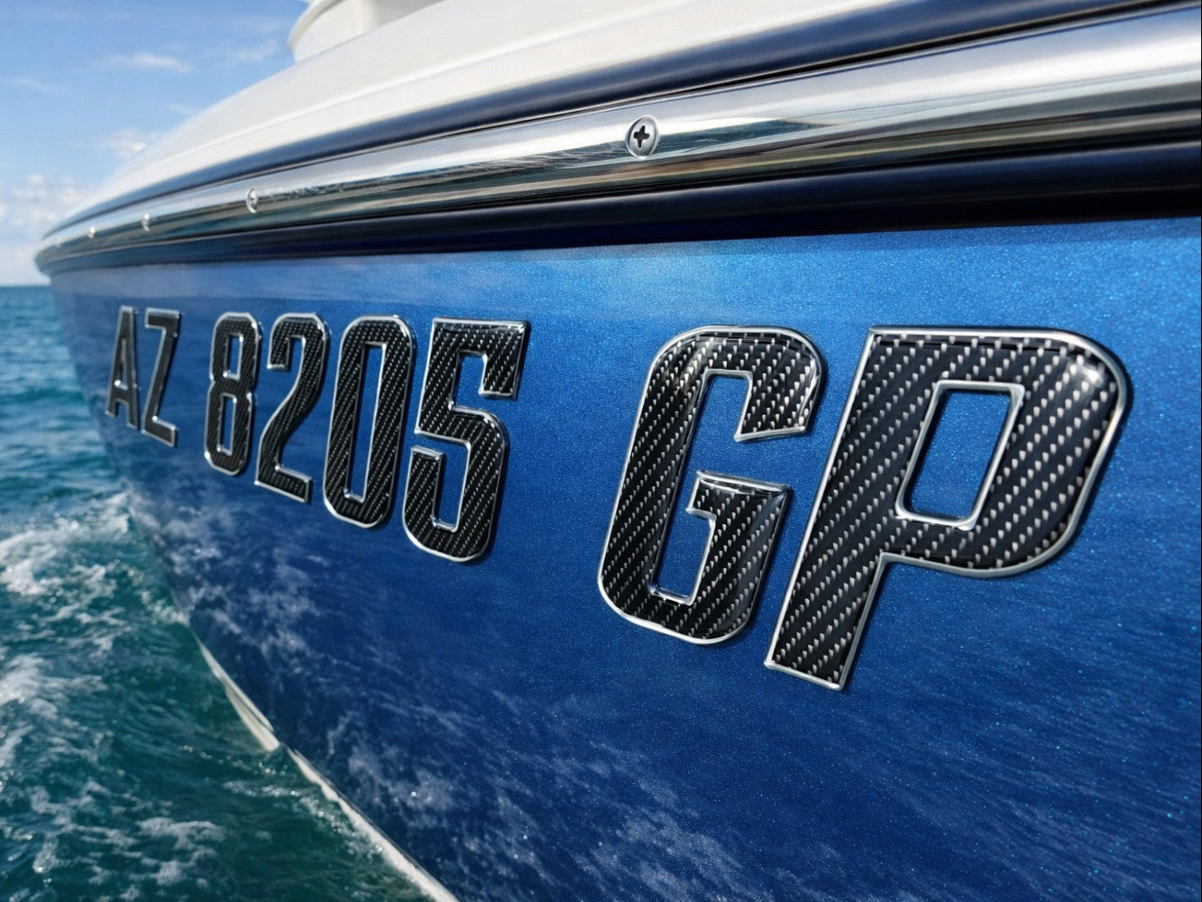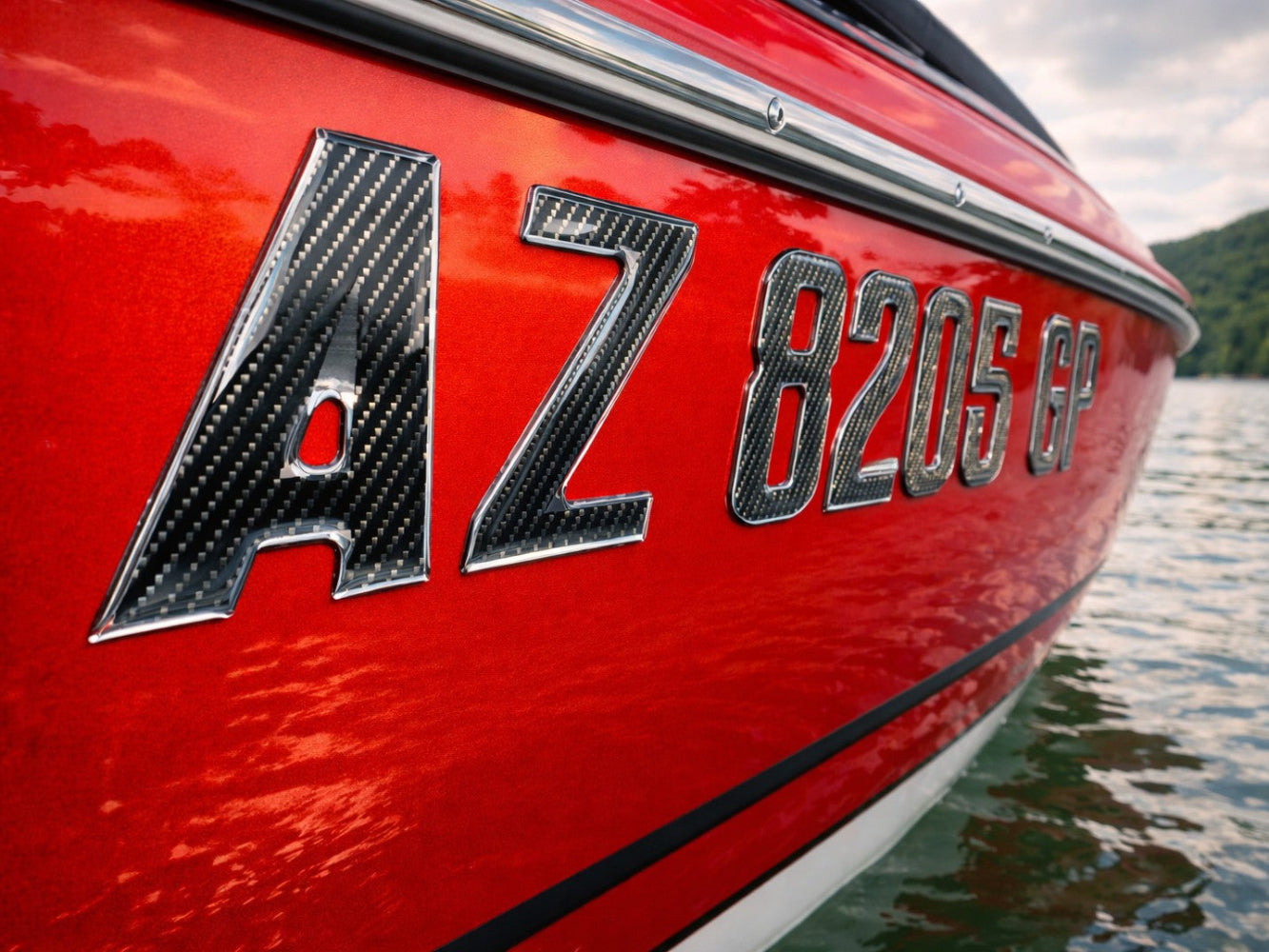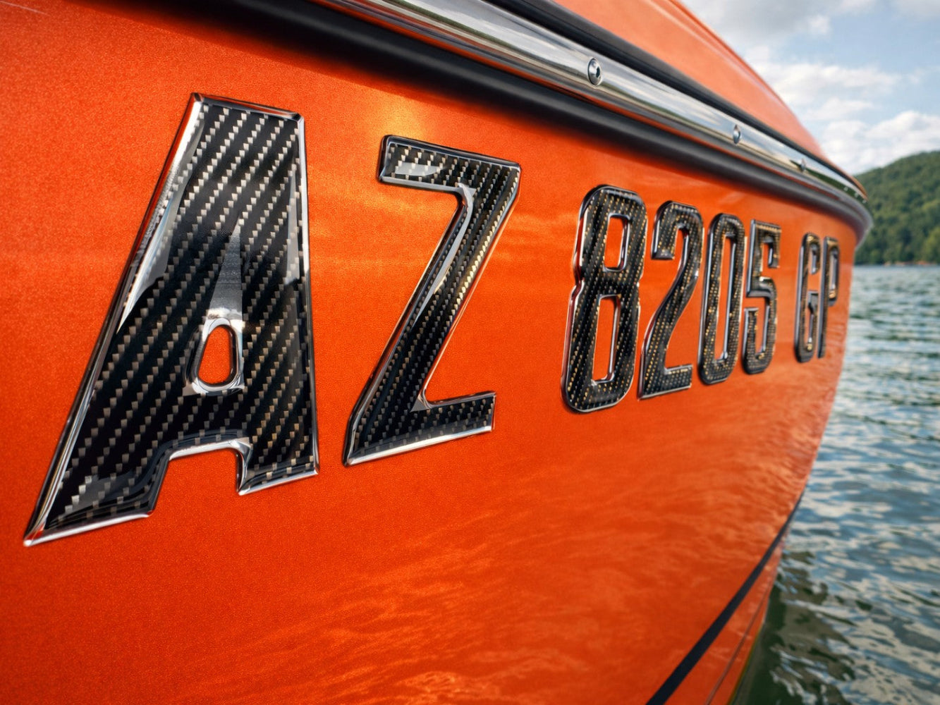 Carbon Fiber with Chrome Trim – Domed Boat Registration Numbers